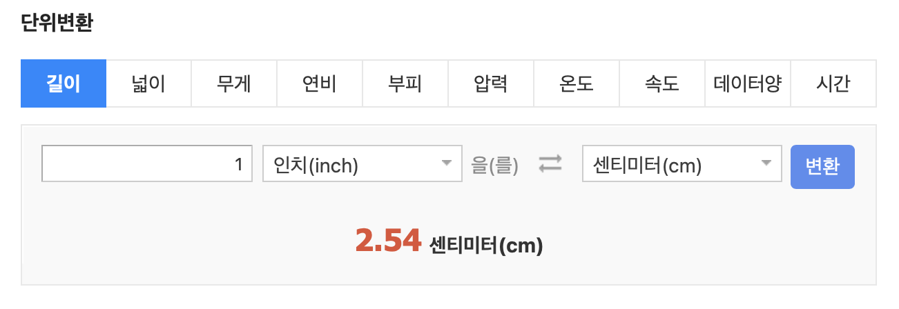 근데 항상 헷갈리기에 1인치가 몇센티미터인지와