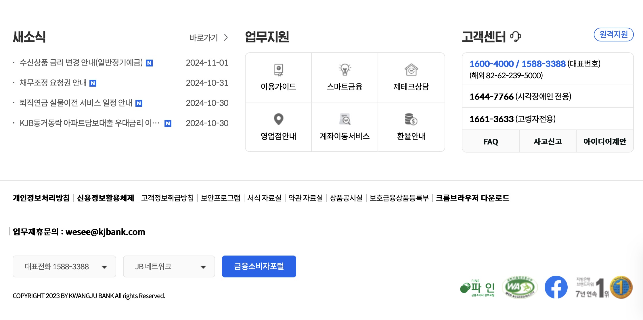 - 상담 내용: 인터넷뱅킹 문의, 서비스 장애 신고, 보안 관련 문의 등